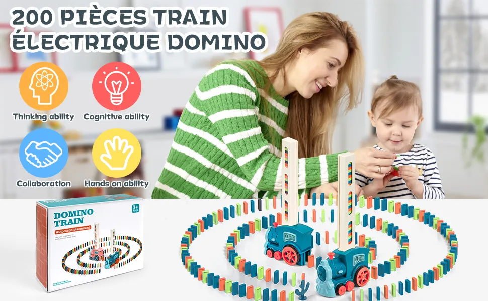 Le jouet de train domino est fabriqué en plastique ABS de qualité sélectionnée, sans bords ni coins, respectueux de l'environnement et sûr, les parents peuvent jouer avec leurs enfants et favoriser la communication émotionnelle entre parents et enfants