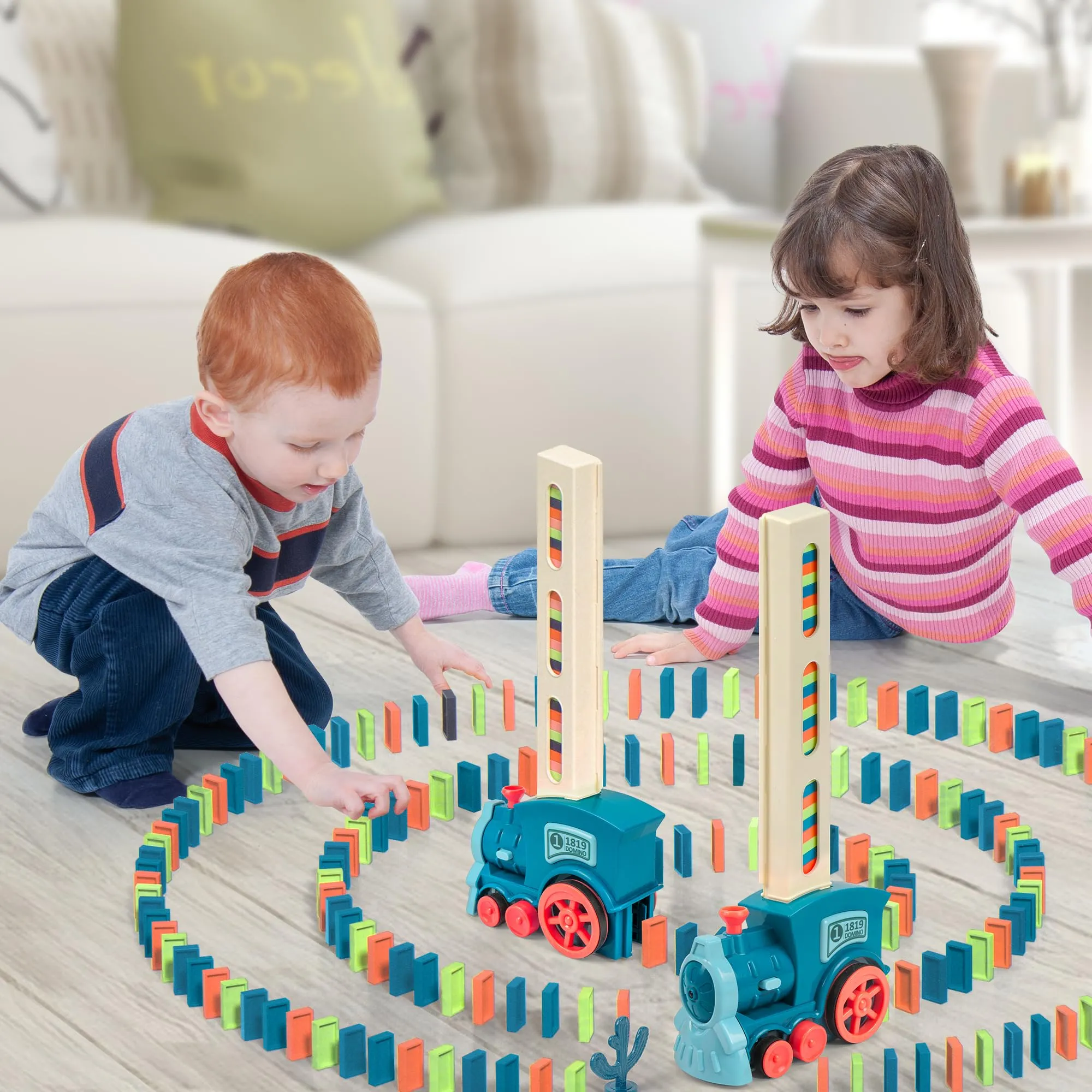 🚂 قطار الدومينو الكهربائي يضع القطع تلقائيًا لمتعة لا تنتهي!